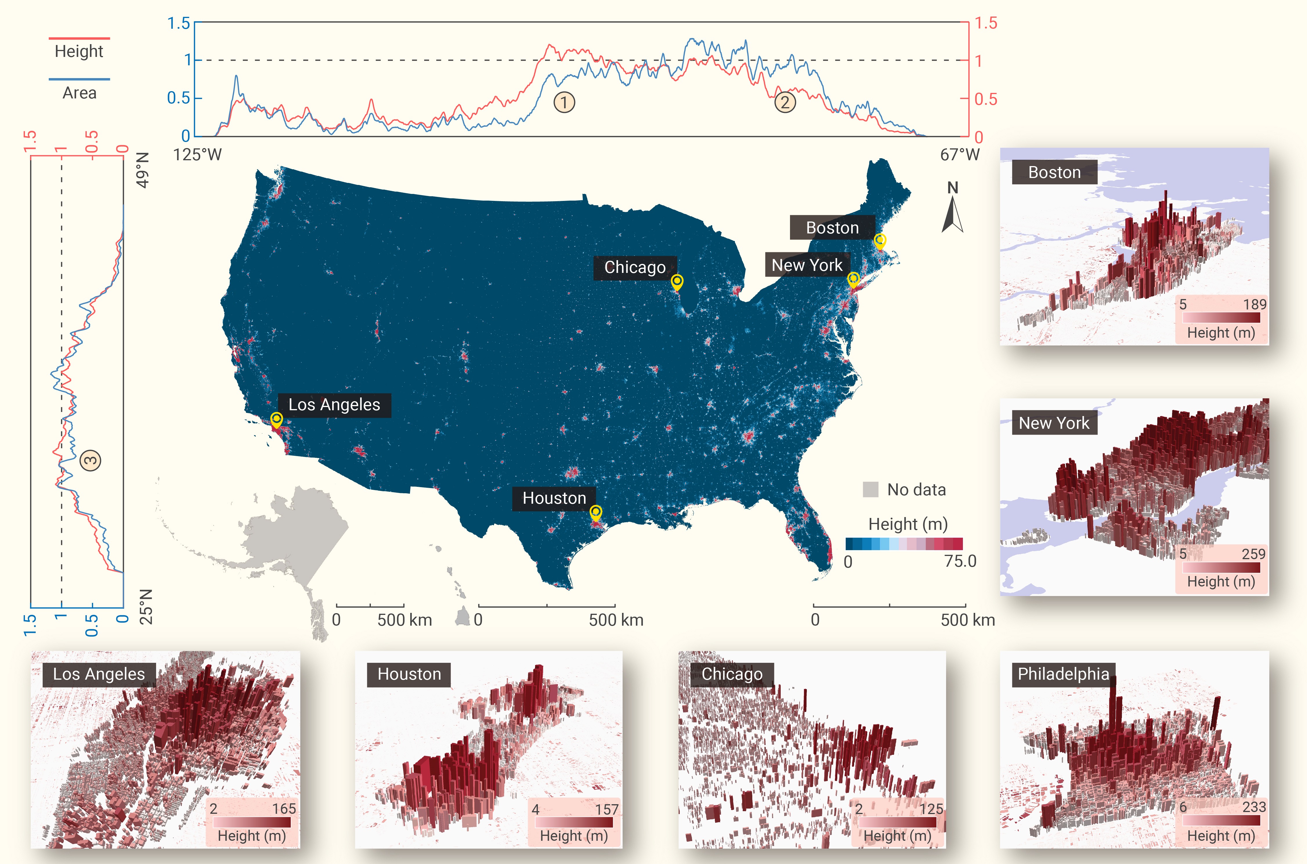 Quantification of the spatial pattern of building heights within the city in the conterminous US