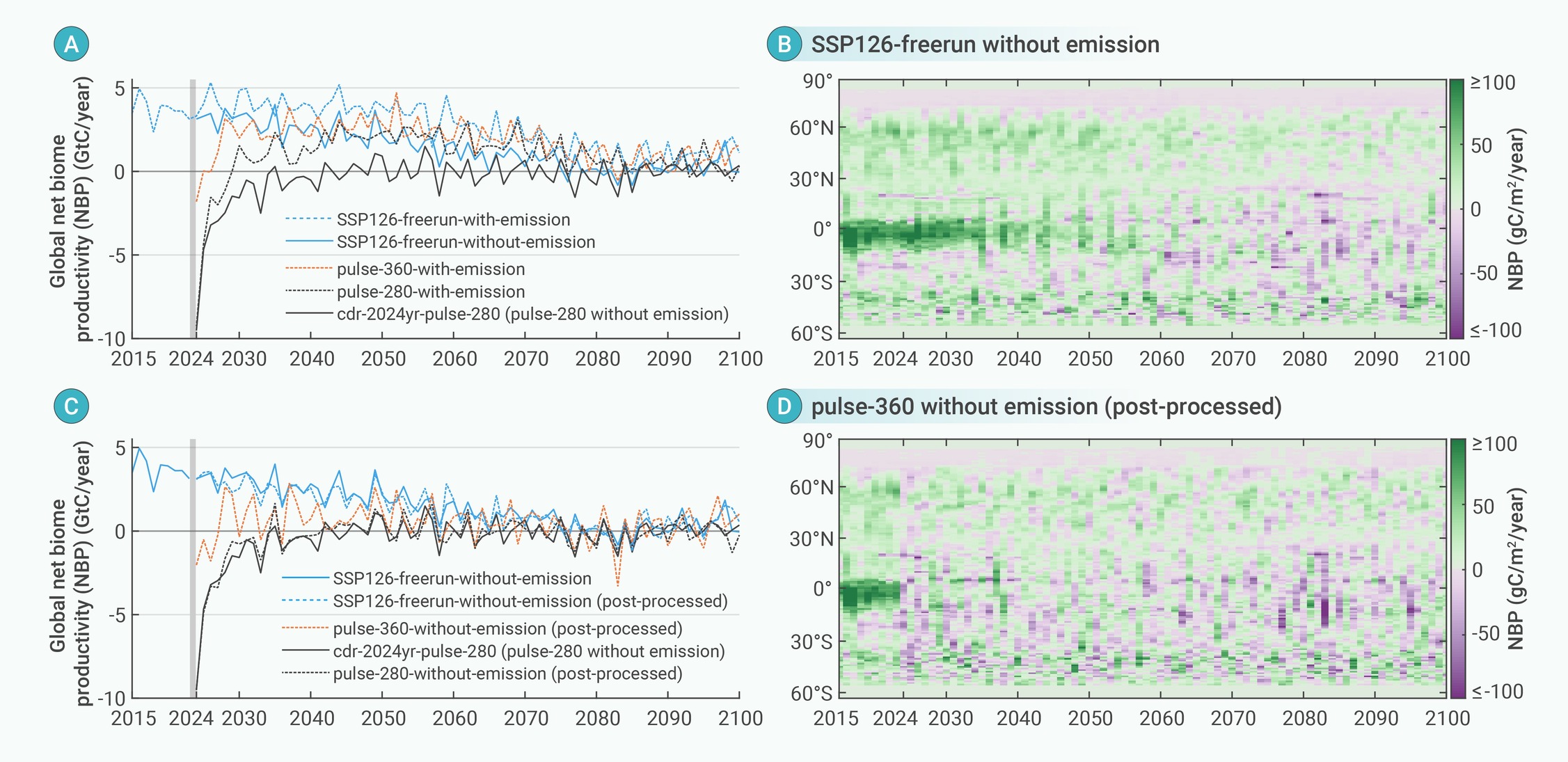 Land-air carbon fluxes and atmospheric CO2 response to CO2 removal (CDR) in 2024