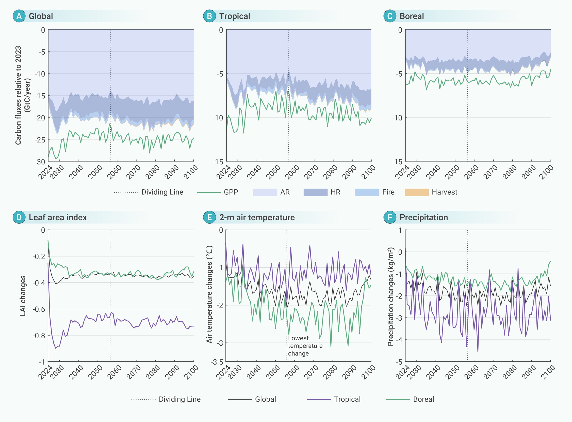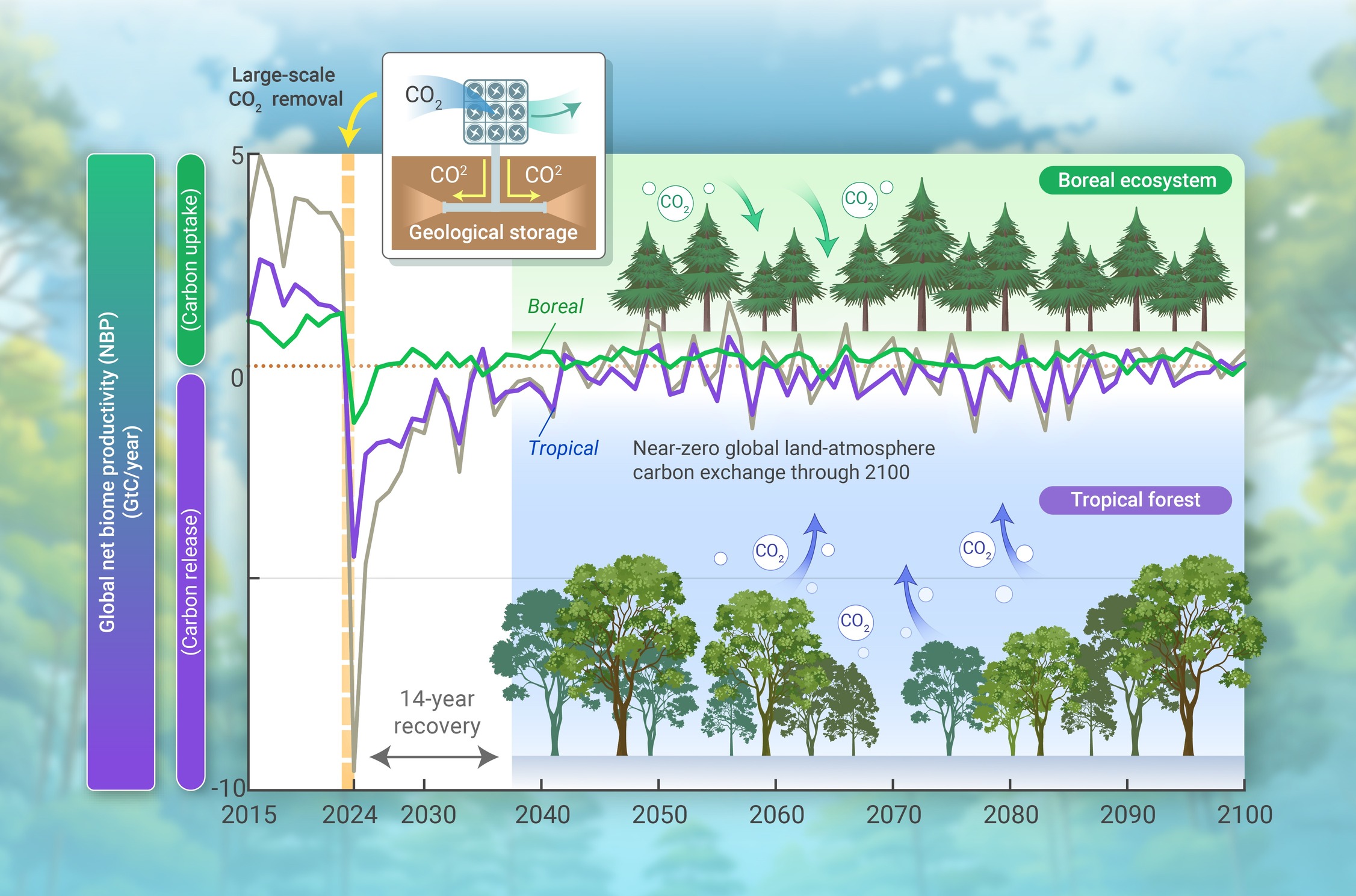 Large-scale carbon dioxide removal (CDR) reshapes climate–ecosystem carbon balance.