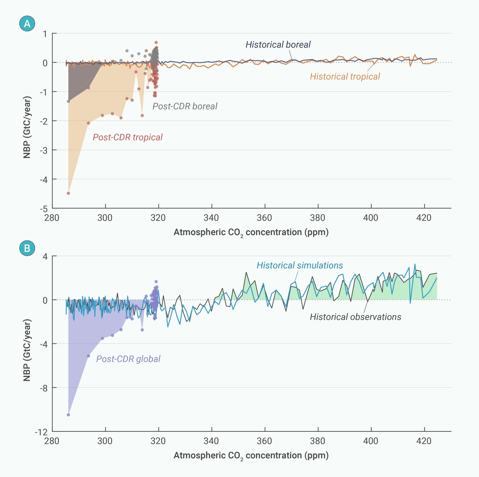 Land ecosystem may release CO2 after large-scale carbon removal.