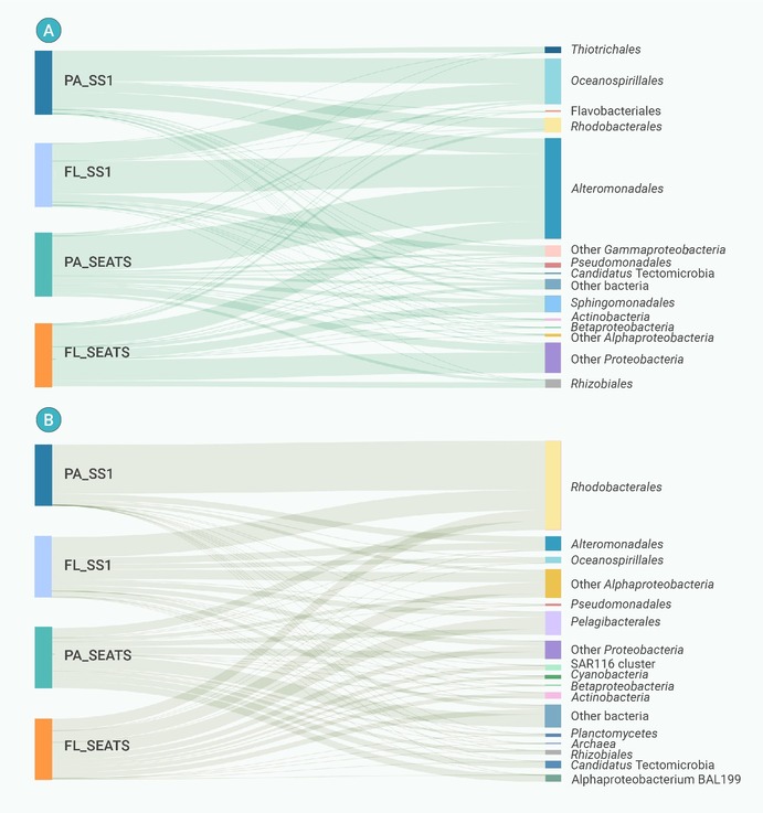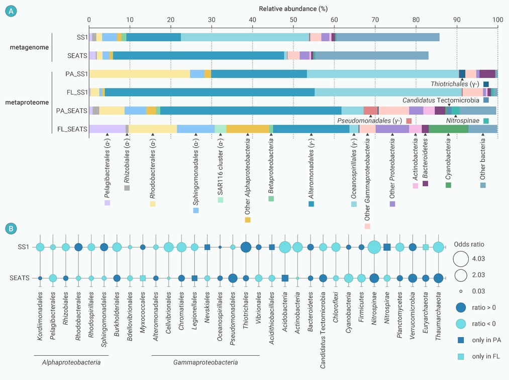 Rhodobacterales and Pelagibacterales are representative selfish and scavenging bacteria, respectively.