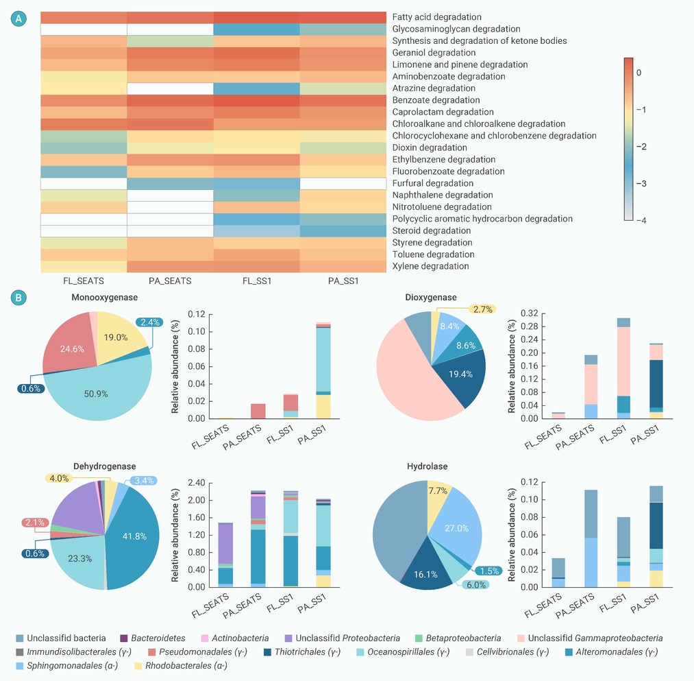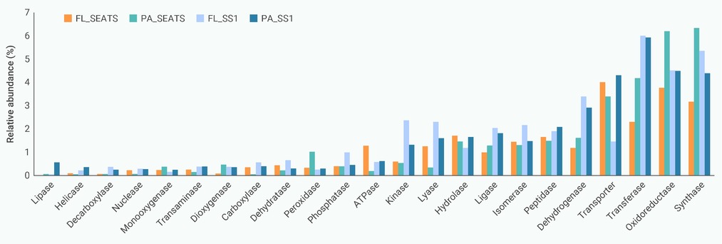 The distribution of hydrolytic enzymes in the metaproteome samples from the deep SCS