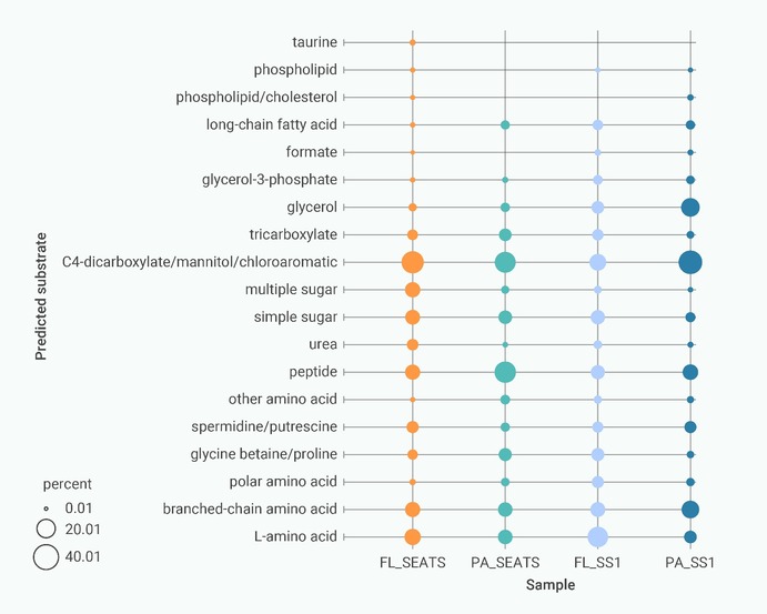 The distribution of transporters in the metaproteome samples from the deep SCS