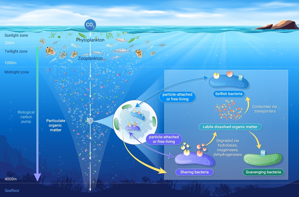 Lifestyle and nutritive mode play key roles in bacteria-mediated organic matter processes in deep sea.