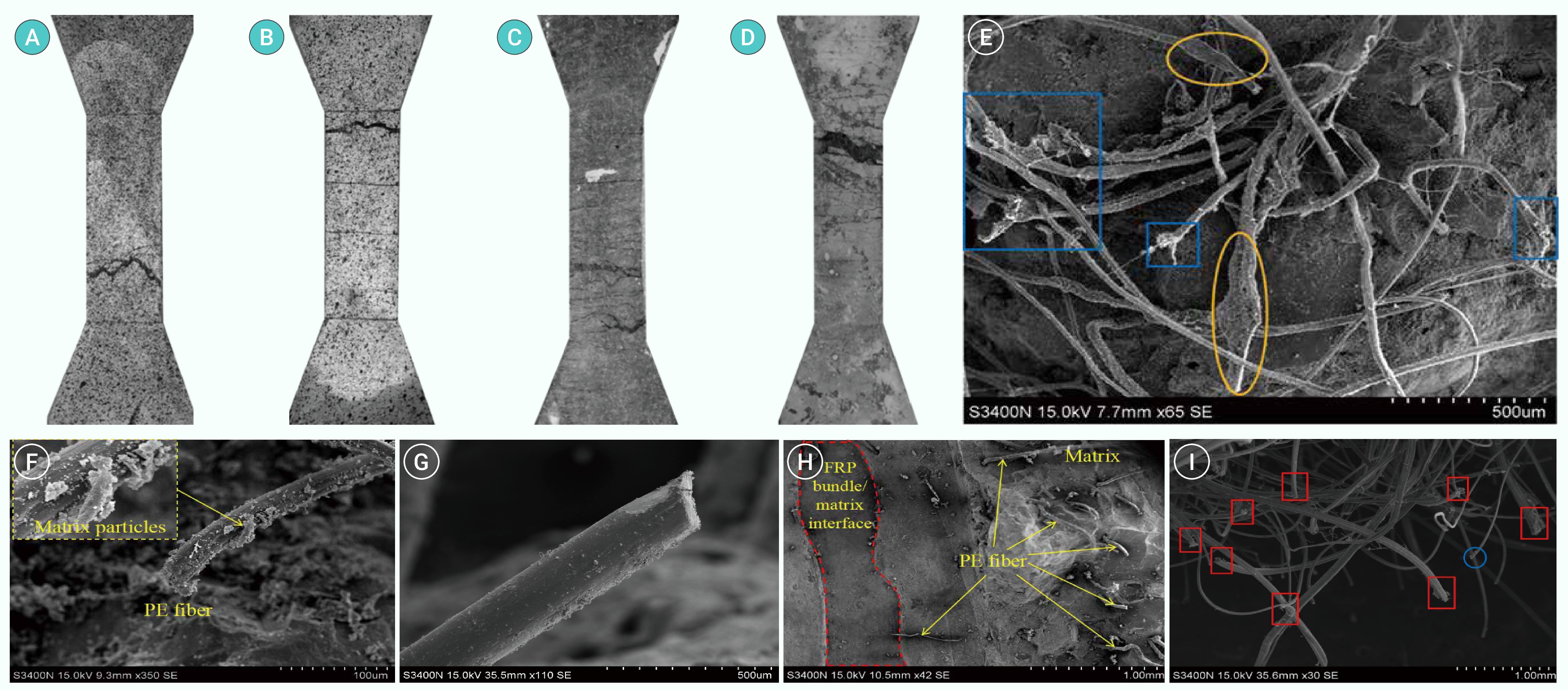 Typical failure modes and microscopic fracture surfaces in F-S13-1 & P18-1