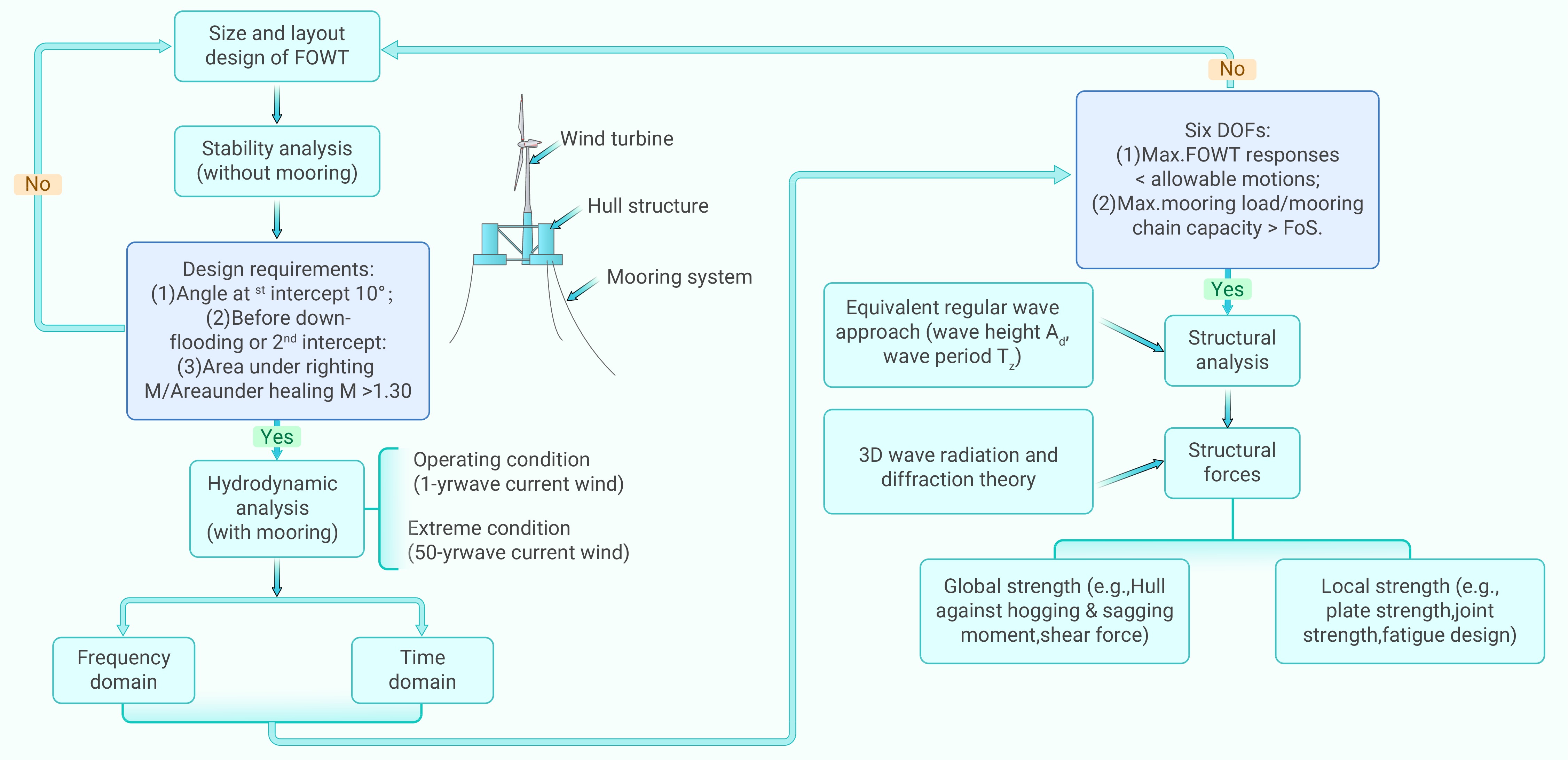 Design procedure for floating offshore wind turbines (FOWT).